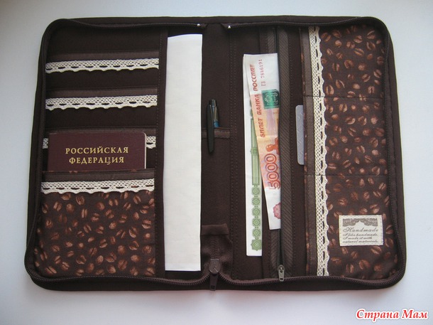 Внутри кармашки для паспортов (на самом деле паспорта совсем не такие будут в этом органайзере