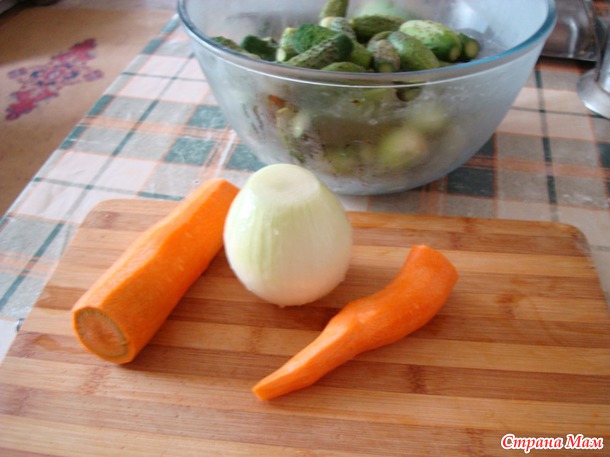 Огурцы, если они не с грядки, предварительно замочить часа на 2, срезать кончики.