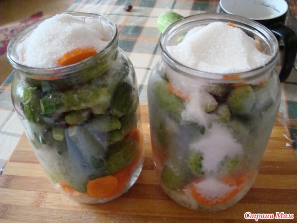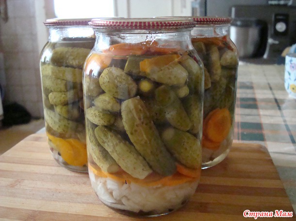 Со стерилизацией не совсем хлопотно. Обычно за раз закрываю одну-три баночки таких огурцов. остальные солю.