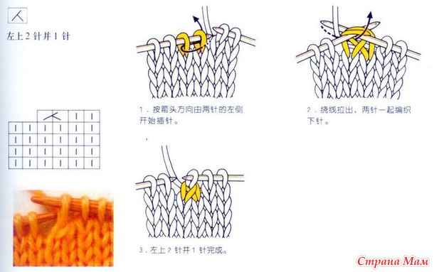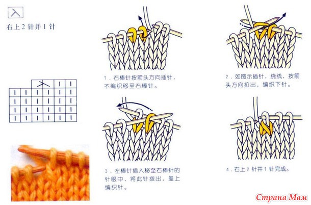 1. 2 петли вместе лицевой http://knitting-pro.ru/basic-stitch/together-2k.html