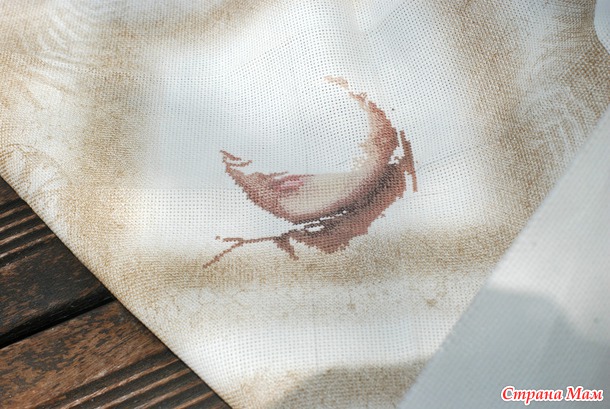 Вышивка сделана по картине Сэра Эдварда Джона Пойнтера (Edward John Poynter), которая именуется как "Лесбия и её воробушек" ( Lesbia and her Sparrow).