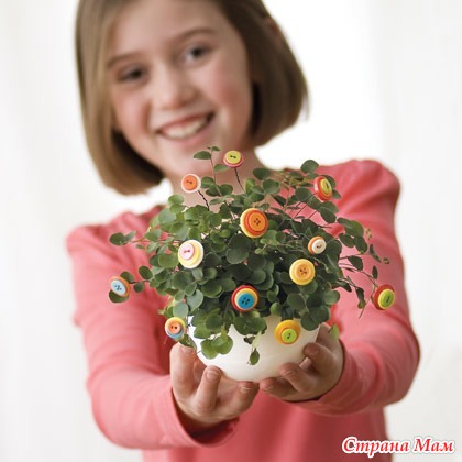 все очень просто, берем проволоку зеленого цвета и пуговицы ярких цветов.