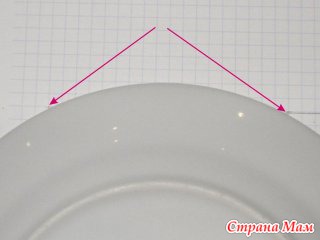 Кладем тарелку на бумагу, так, чтобы края тарелки совпали с углами квадрата (показано стрелками).