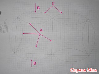 Накладываем наш шаблон на бумагу и обрисовываем контур, обязательно помечая углы квадратов рисками. (показано стрелочкой)
