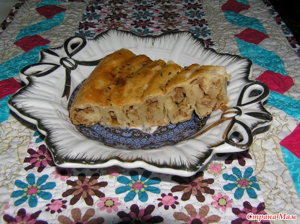 Если делать все правильно и тонко раскатывать, то получается слоеное тесто с мясной начинкой. Если начинку сделать вкусной, то выходит все очень даже пикантно.