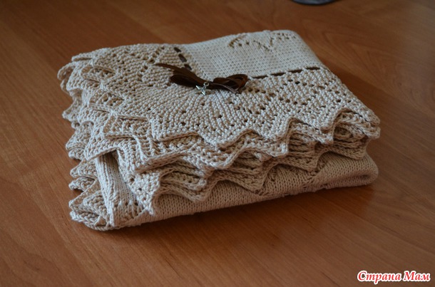 В начале и в конце основного полотна вязала на бросовую нить, потом когда привязывала кайму бросовую нить отплела - получился очень красивый край без швов.