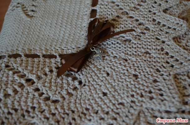 Потом украсила плед тонкой ленточкой шоколадного цвета, сделала маленький бантик и пришила подвеску звездочку.