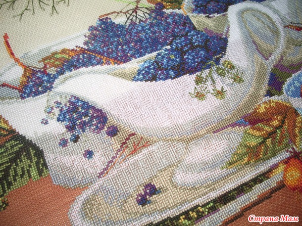Впечатления-нитки Аврора-на любителя-кому-то напоминают катушечные, а кому-то шелковые. Мое личное мнение-конечно, не ДМС, но интересные, из минусов-они тонковаты, я люблю, когда крестики более полные. Из очень большого минуса-----чашки зашиты белым цветом на коричневом фоне стола----очень просвечиваются.