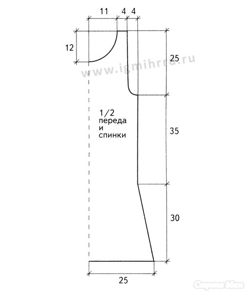 Внимание! Перед началом работы изготовьте выкройку изделия в натуральную величину и все убавления и прибавления выполняйте в соответствии с выкройкой.
