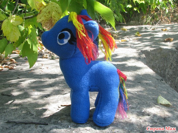 Материал-флис, наполнитель-синтепон, грива и хвостик из мулине. Так хотелось мне гриву сделать что бы она расчесывалась, но получилось не очень. Следующую из шелковых ленточек сделать попробую.