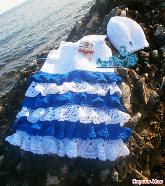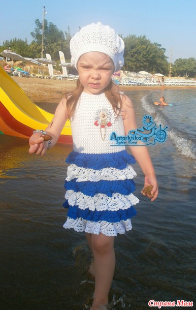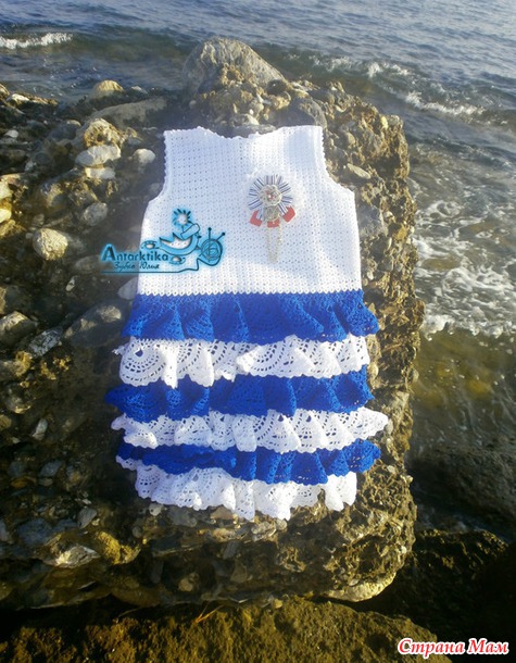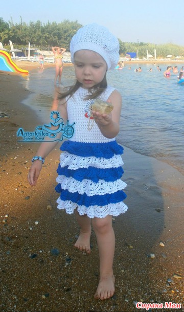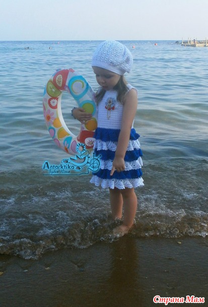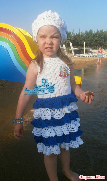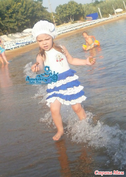 Всем привет!!! Вчера мы вернулись с семьёй с отдыха из Турции. Доче там исполнилось 3 года. И специально к дате и к морю я связала ей комплект. Платье вязала по МК от Юли Михович http://maxi.stranamam.ru со своими небольшими отступлениями. Юля, когда узнала, что платье будет в морском стиле, сделала нам в подарок ещё и замечательную брошь. Юля, спасибо тебе за это огромное!!!