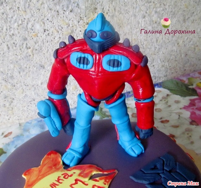 Привет девчоночки!) Вот тортик новый сделала. Должно было быть 2 трансформера, но первого жёлтого делала без шпажек. И он категорически не захотел ни стоять, ни сидеть на этом торте))) Ну ничего!!! Теперь я более опытная в этом деле!) ещё блин водки не нашлось, чтоб разбавить краску..
