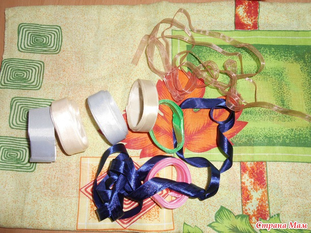 Для шитья-отрез интересненькой тканюшки, атласных ленточек: темно синий, светло бежевый, зеленый (тонкие), косая бейка - розовая, серая, бежевая. И светоотражающая лента