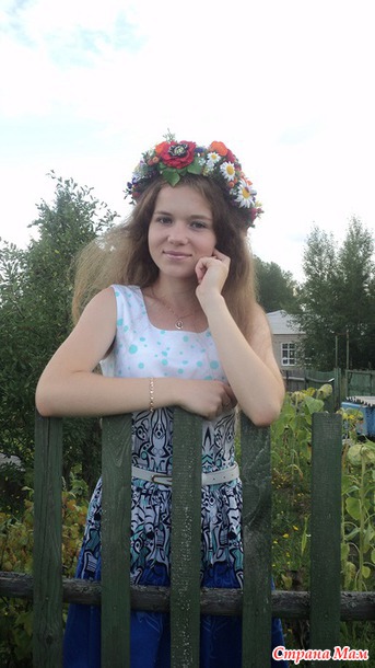 Оставалось самое важное - красиво всё это собрать-сплести в венок. Несколько раз начинала и всё не нравилось. Но всё-таки я это сделала!!! То, что получилось в итоге - очень нравится. Даже ни сама, ни заказчица (как в этом мне призналась сегодня) не ожидала, что ТАК получится. Девушке ОЧЕНЬ понравилось (хоть и видела только на фото) и приятно было слышать от неё слова благодарности.