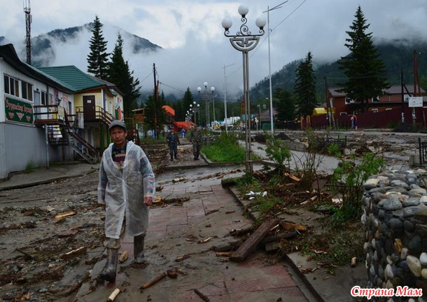 В заключение несколько фото разрушений в Аршане после схода селевого потока: