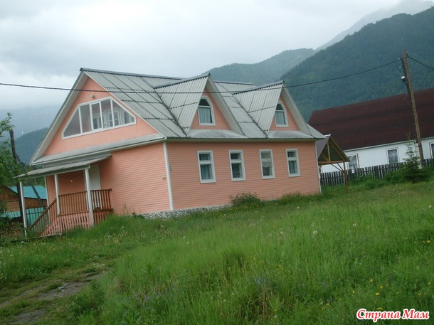Вид с угла дома на горы: