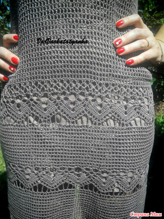 Связалось платьеце на заказ. Задумывалось как платье по мотивам Salvatore Ferragamo. Вот здесь описание по которому начинала вязать https://www.stranamam.ru/post/7992838/. Но заказчица попросила неклешенный подол. Схема веерочков не подошла, так как давала большое клешение. Пришлось подобрать другой узорчик. Использовала пряжу Limoncello (Fashion Mill) 100% лен (1300 м/100 гр) в три нити, крючок 2,75. Попросила сотрудницу попозировать. Подклад еще несовсем готов. Для заказчицы платье будет подлинней,-до колен(она на много ниже ростом)И вот что получилось.