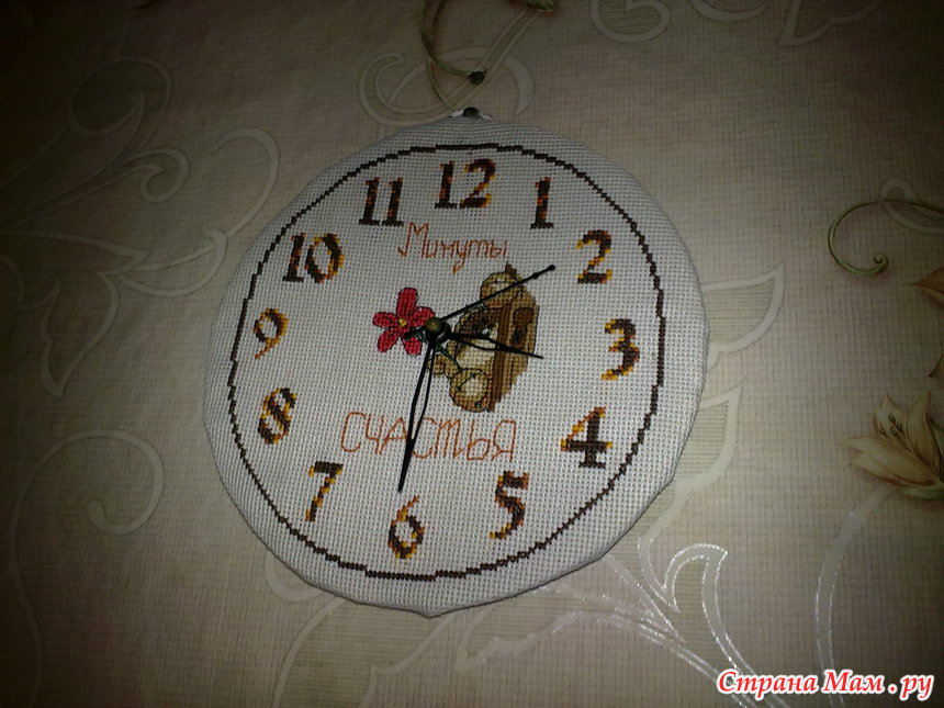 Решила вышить часики, но не обычные а с мишкой Физзи)