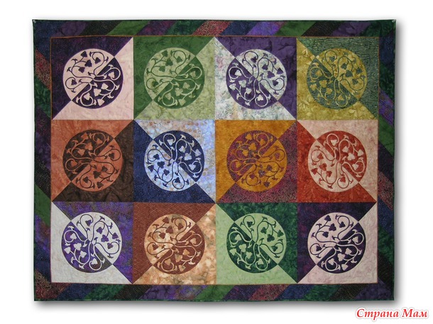 В заключении могу сказать, что не знаю, какой из методов мой любимый. Часто использую комбинацию разных. Ещё не показала Гавайскую аппликацию и кельтские узоры, но там своя специфика и много вариантов. Оба квилта подарила, фото кельтского не смогла найти, но где-то должны быть.
