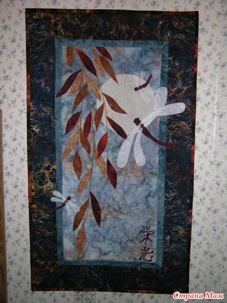 Пример панно с аппликацией с подвёрнутым краем, подшит прозрачной ниткой швом Hem stitch