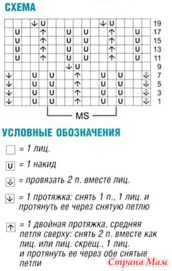 Плотность вязания, ажурный узор: 15 п. и 21 р. = 10 х 10 см.