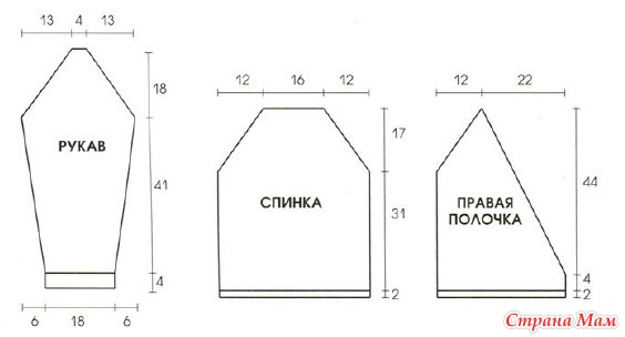 Правая полочка: вязать симметрично левой полочке.