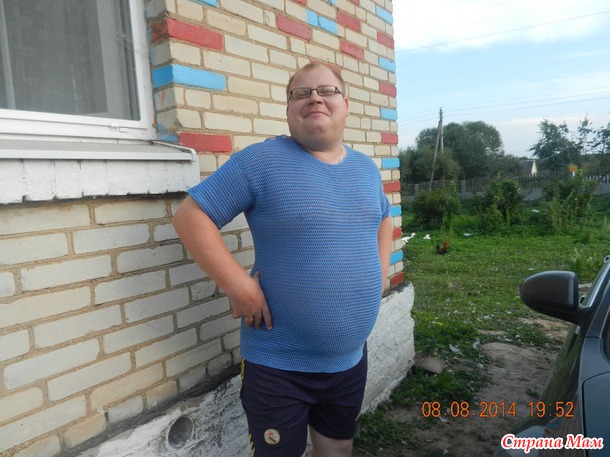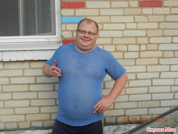 Я ДОВЯЗАЛА МУЖНИНУ КОФТЮЛЮ аж 60-го-го-го размерища. Пряжа Мисс от Элиз, цвет Джинс №303, крючок Гамма №1,9. Вязала по кругу поворотными рядами.Намучилась - жуть как - начиная с выбора модели, узора, снятия мерок ну и примерок. Наслушалась от мужа в процессе столько критики... уууу... Даже бросала в "окончательные недовязы", но пожалела своих трудов - "прикончила". Больше сказала мужу не вяжу, такооой капризный... Правда сегодня уже целовал-целовал...