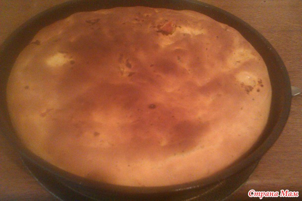 Далее выложить на лист, на котором будете выпекать. Я взяла сковороду которую смазала маслом – так и низ будет поджаристым.