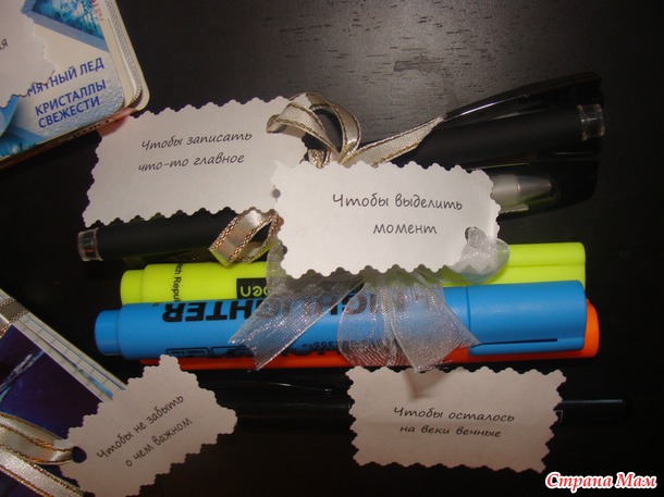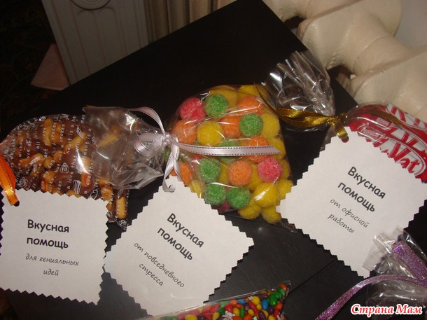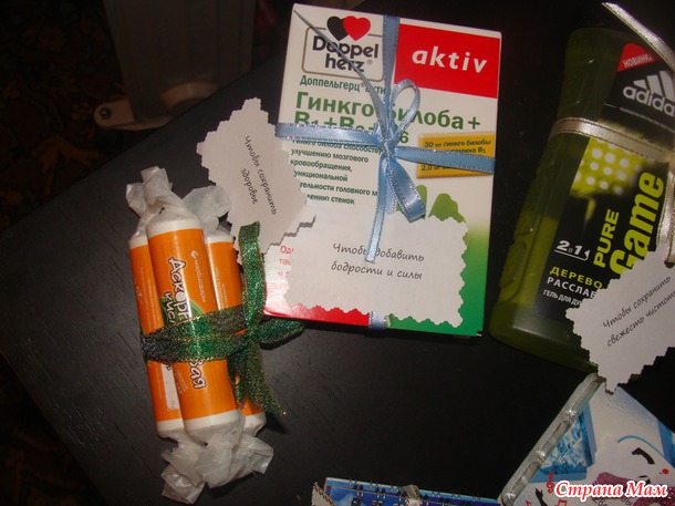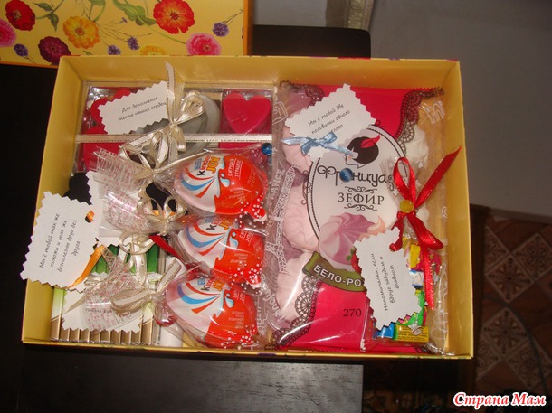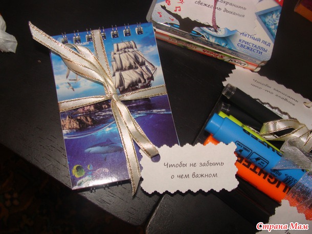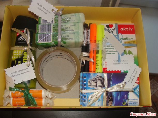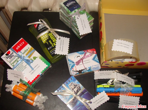 Вторая коробочка "Всякие мелочи..." Да, кто-то скажет, что это совсем не "подарок", но самая суть была именно в надписях, и в наших семейных шутках