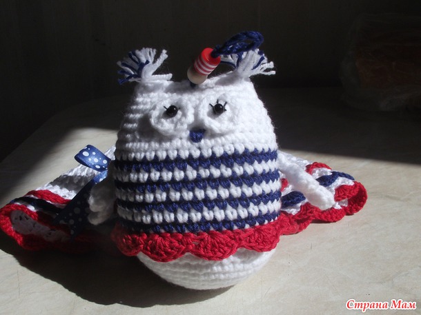 Совёнок связался в придачу и получился какой-то грустный и задумчивый. Наверное, ему так хочется на море...