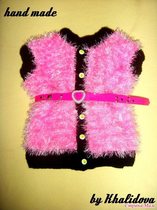я как раз тоже пытаюсь сотворить жилет для дочери и добавила капюшон,а Ваша идея с пояском делает наряд нарядным