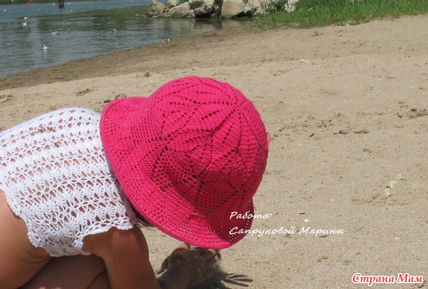 Делала меньше рапортов ну и, конечно же, несколько раз перевязывала, чтобы получилась именно шляпка. Сам "ананасик" вязала не вп, а стсн, вп, стсн (я имею в виду ячейку "ананасика" ) - он получился более вытянутым в длину. Ниточки - ажурная пехорка, крючок 2.