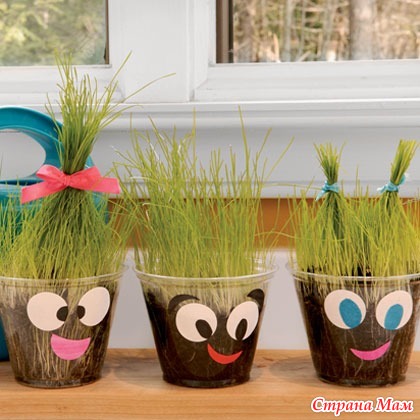 Позвольте ребенку украсить стаканчики. Поставьте все в теплое и солнечное место, не забывайте о поливе и результат не заставит себя ждать.