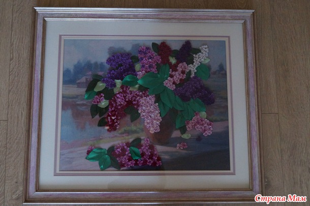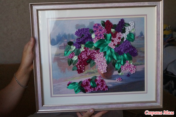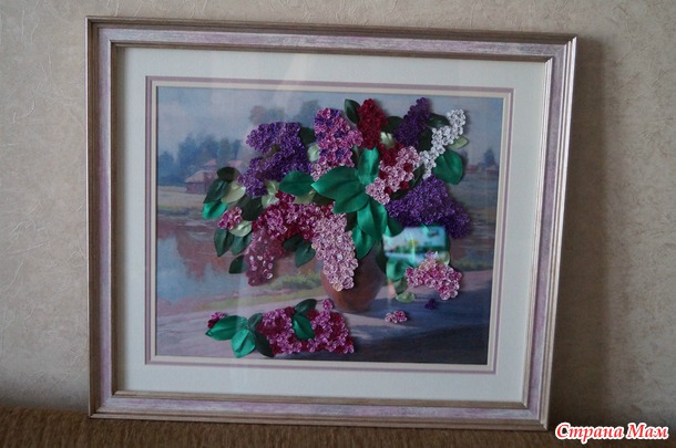 А это делала на юбилей мамочке. Канву брала для вышивания бисером. Техника казанши из лент. Спасибо за идею и вдохновение мастерицы из Страны мастеров.