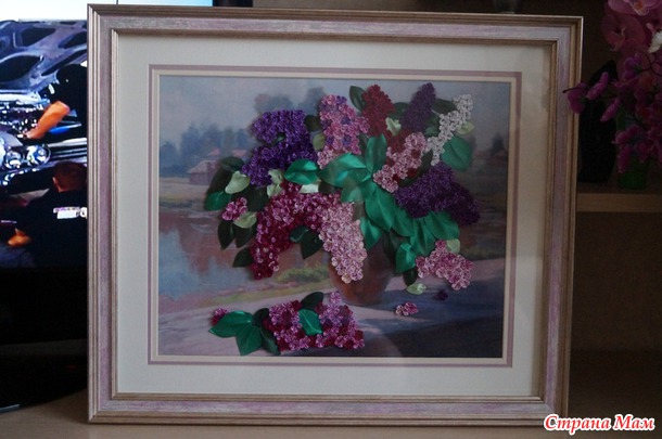 А это делала на юбилей мамочке. Канву брала для вышивания бисером. Техника казанши из лент. Спасибо за идею и вдохновение мастерицы из Страны мастеров.