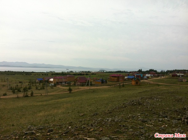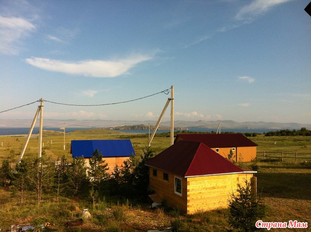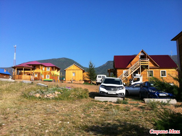 А это вид на нашу базу отдыха и на горы с берега Байкала: