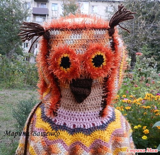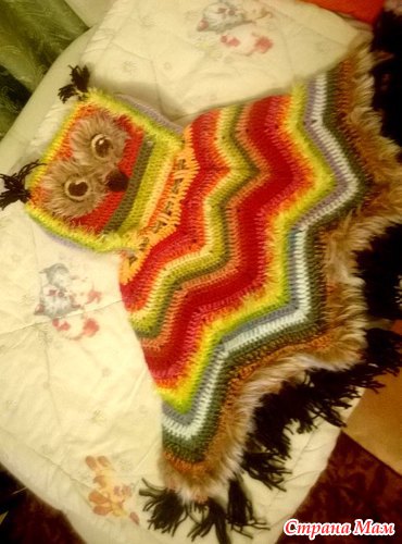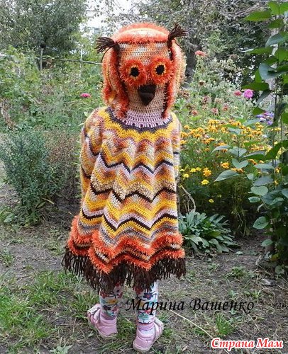 Рада знакомству и нашему с вами общению и совместному вязанию вот такого пончо совёнку от мастера Иры Ротт