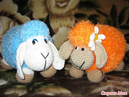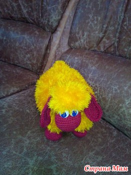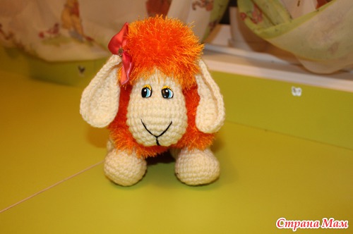 Очень хотела желтого барашка, но пришлось вязать из того, что есть.