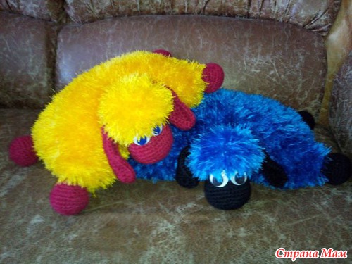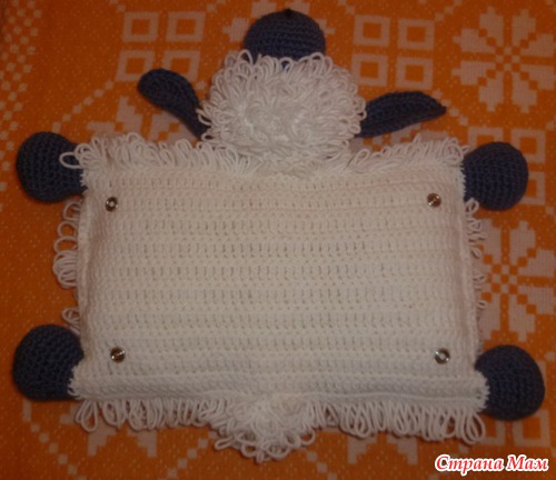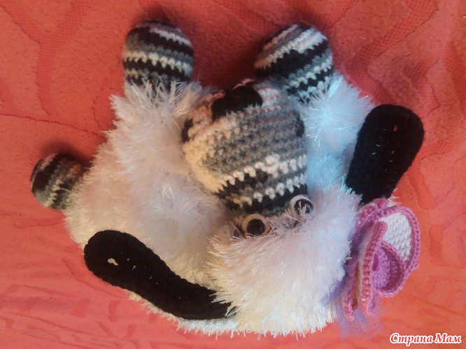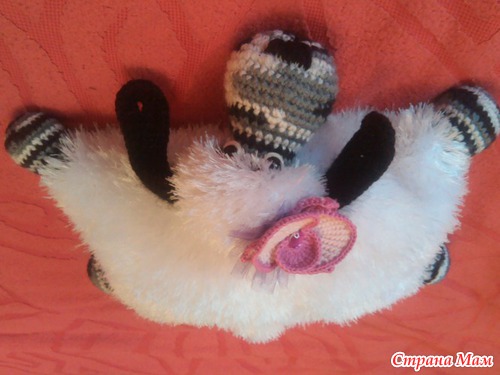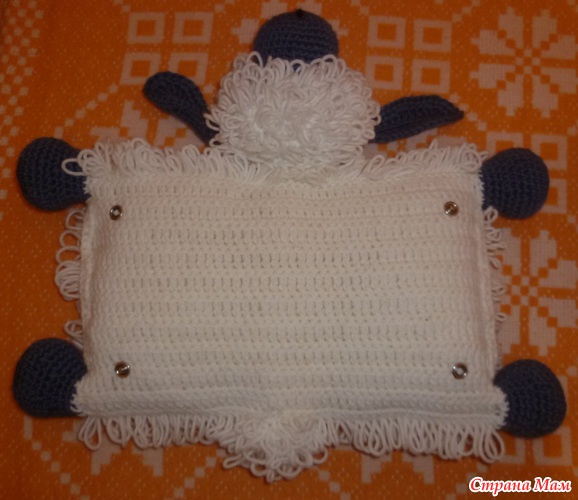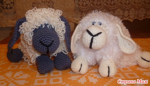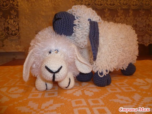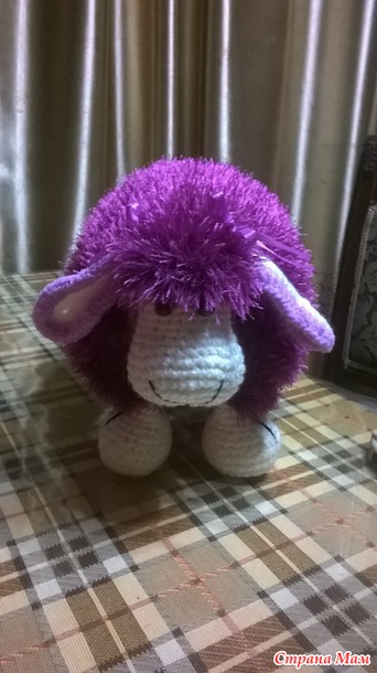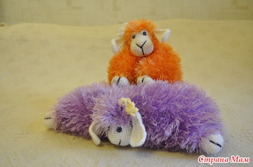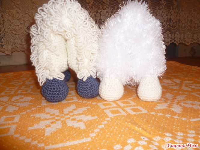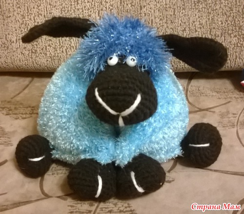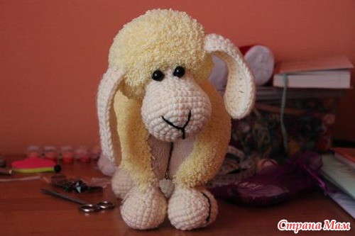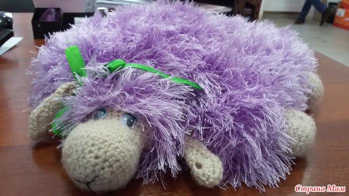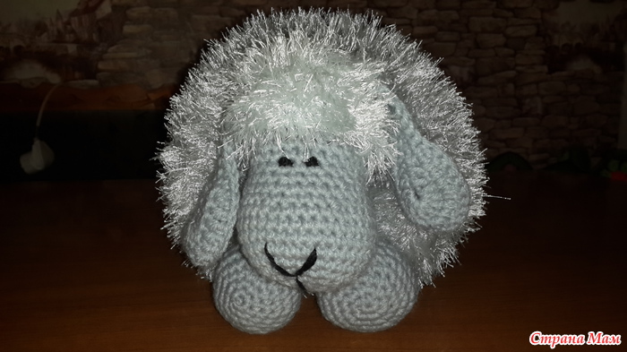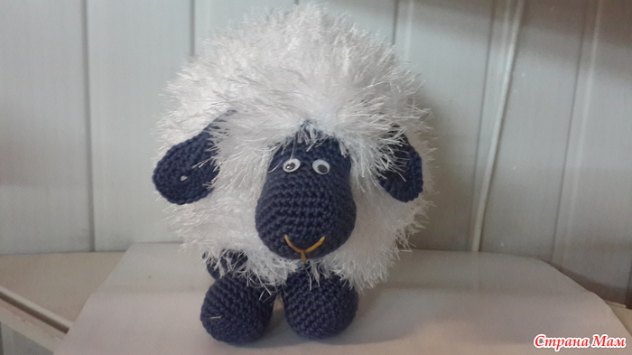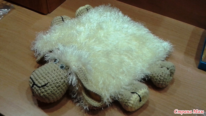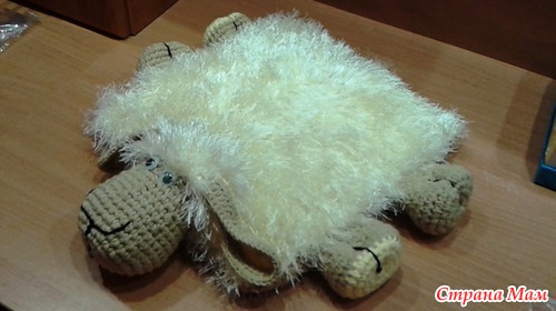 мне кажется, что мой баранчик получился не очень пропорциональным.. а вот почему? шкурку вязала размером 30*30 см... то есть получился квадрат.. снизу животик связан из простой пряжи... может ножки пришила неправильно?