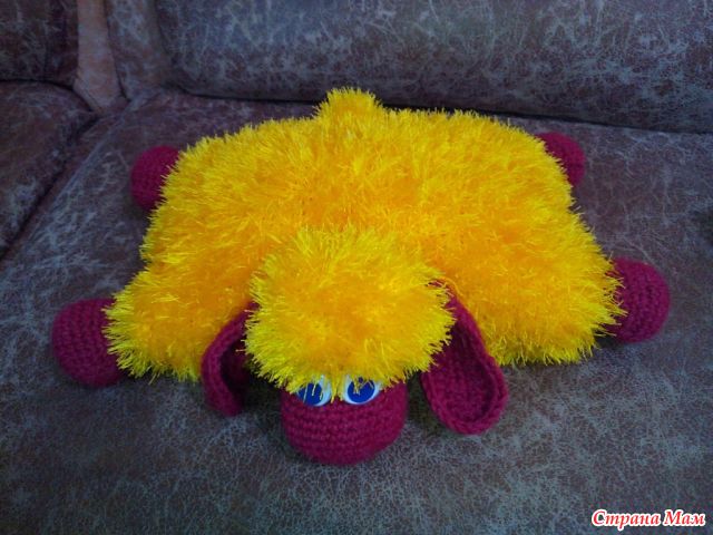 Кучерявый Цыган -Кроха Троицкая 2,5 мотка(130 г) , крючок № 4,на мордочку Юнити лайт совсем немного(связан полностью крючком), набит...ну такую подушечку по размеру сделала из синтепона в 6 слоёв