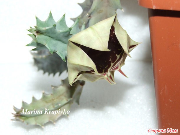 Покажу еще одно растение из этой серии - Huernia zebrina. Цвело прошлым летом. Огромный лакированный цветок размером 5-6 см, без запаха, держался 7 дней.