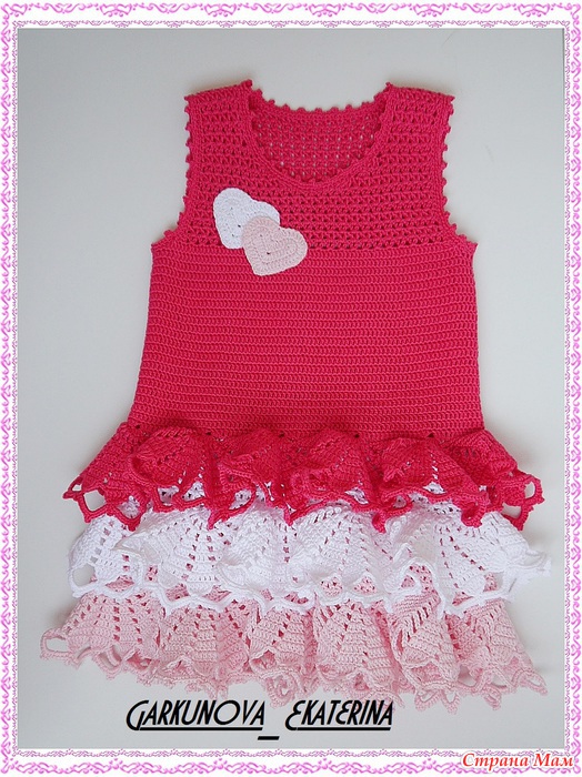 Мне сарафан понравился весь, не хотелось ничего менять, даже сердечки повторила. Только рисунок верха изменила. Ну хоть что-то от себя нужно было сделать