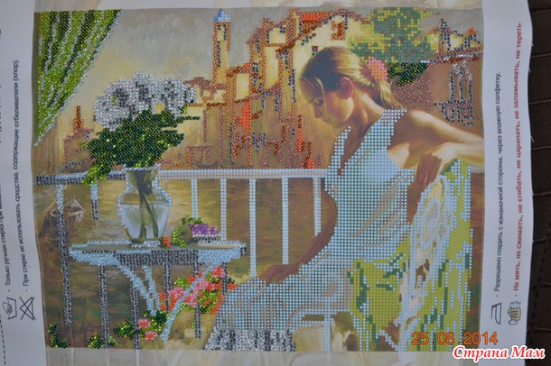 Загорелась я этой картиной(на любителя конечно, но мне нравится). Уже придумала оформление и место на кухне. В самом начале работы было очень сложно, но сейчас втянулась и буквально за неделю, вышивая между другими работами, уже заканчиваю эту картину
