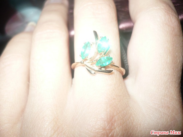 вот она моя прелесть весом в 2.33. с 3 изумрудиками. Кстати самые чистые из всех которые были. Изготовитель Костромской завод.