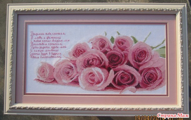 А ещё у нас есть повторяющаяся работа Татьяна и Екатерина вышили одинаковые розы в вазе