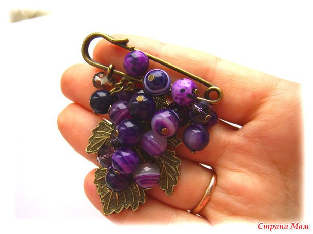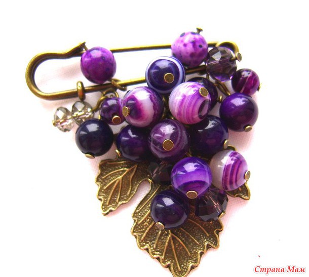 Тэги: брошь, брошь из натуральных камней, брошь из агата, брошь веточка, брошь виноград, виноград