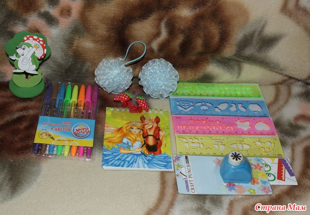 Всем огромный привет, подарок к 1 сентября получила давно, нашей дарительнице Татюше http://tanja-tanechka-tanjusha.stranamam.ru очень благодарна, но у нас так сказать традиция праздновать 1 сентября с тортиком и подарками. Потому, как уже давно ходили в развивашку (почти школа), а теперь совсем взрослая становится.