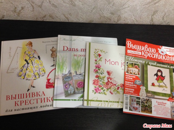 И моя самая последняя книга, опять же это В. Ажинер "Dans mon jardin au point de croix" - эта книга просто бомба, которая взрывает мозг!!! Весной я делала блокнот по схеме из этой книги. Вот тогда еще решила ее купить, но нашла в инете совсем недавно и сразу заказала не раздумывая. В книге очень много небольших сюжетов, которые смогут создать уют дома.