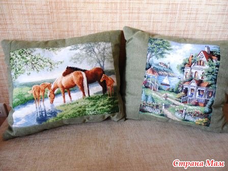 В общем не долго я раздумывала, отдала вышивки свои сестре, а она сшила мне аж две подушки!!!