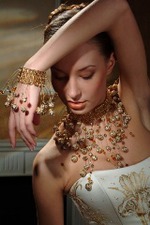 Если вы хотите надеть украшение с цветными камнями, то цвет камней должен сочетаться с доминирующим цветом в вашем наряде.